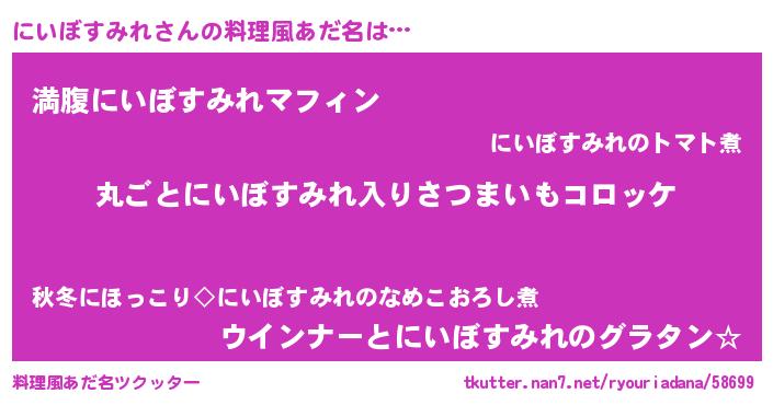 | 意味不明あだ名 | 『住所不定無職にいぼすみれ(62歳)』 |