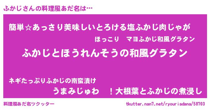 | 女子向けラノベタイトル風あだ名 | 『ふかじの玉の輿計画!』 |