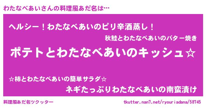 | 意味不明あだ名 | 『とにかく怪しいわたなべあい』 |