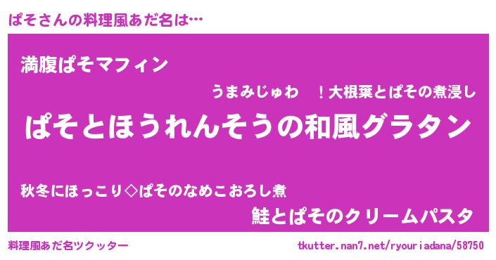 | 女子向けラノベタイトル風あだ名 | 『ぱその玉の輿計画!』『死神ぱその再婚』 |