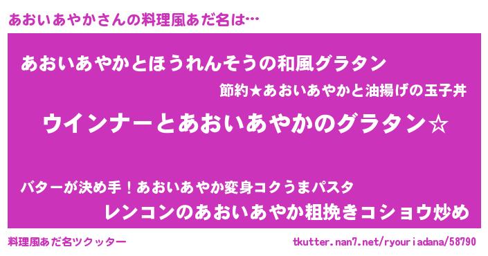| ヘコむあだ名 | 『なまこ酢』『あおにー』『あおを』 |