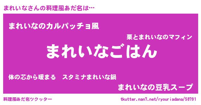| 意味不明あだ名 | 『なめこ科まれいな属』 |