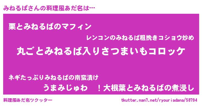 | 男性向けラノベタイトル風あだ名 | 『この素晴らしい世界にみねるばを!』 |