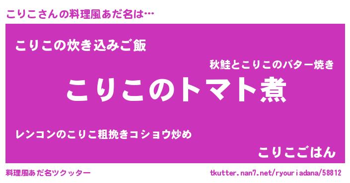 | ヘコむあだ名 | 『こりこ(笑)』『酢こんぶ』 |
