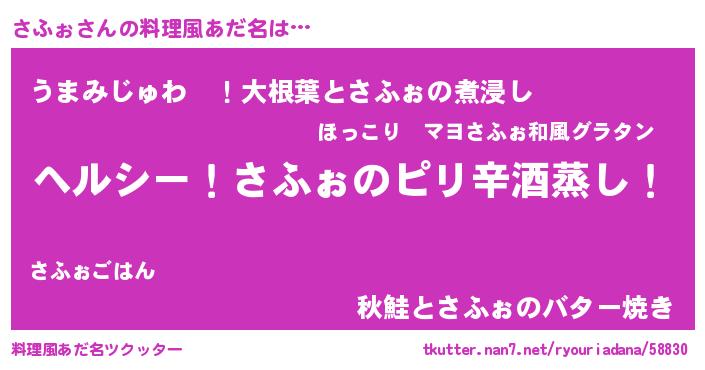 | 胡散臭い通販商品みたいなあだ名 | 『芸能人もオススメする高麗人参…その名も「さふぉ」』 |