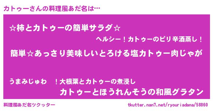 | ヘコむあだ名 | 『カトゥー(小並感)』『レバニラ』 |