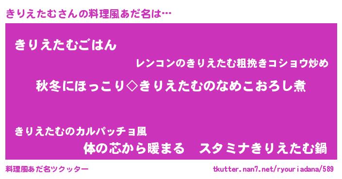 | ヘコむあだ名 | 『なまこ酢』『きりにー』『きりっぺ』 |