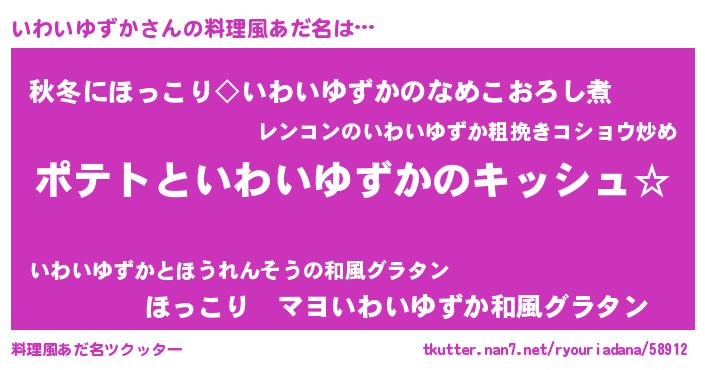 | ポケモン風あだ名 | 『ヒイワイユズカ』『イワゴンZ』 |