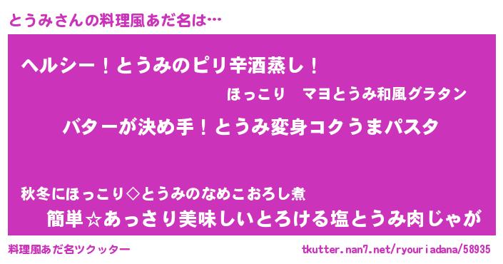 | 女子向けラノベタイトル風あだ名 | 『とうみ恋絵巻』『闇のとうみ』 |