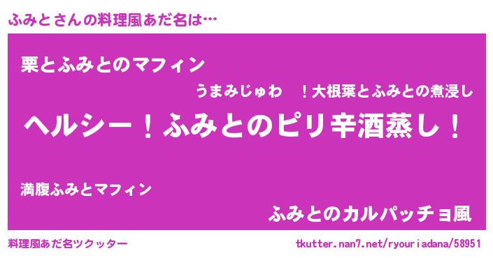 | 男性向けラノベタイトル風あだ名 | 『Re:ふみとから始める異世界生活』 |