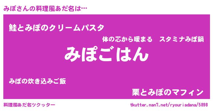 | 男性向けラノベタイトル風あだ名 | 『ミポスレイヤー』『はたらくみぽさま!』 |