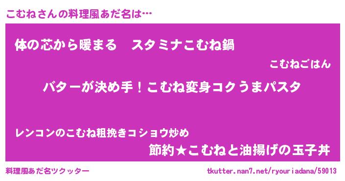 | ヘコむあだ名 | 『なまこ酢』『こむにー』『こむ太郎』 |