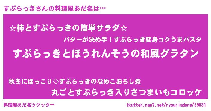 | ヒーロー風カッコイイあだ名 | 『仮面スプダー』『友情の使者すぷらっき』 |