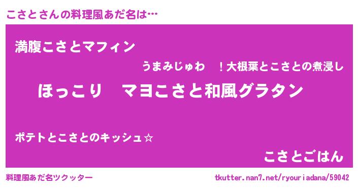 | ヘコむあだ名 | 『こさと(笑)』『なまこ酢』 |