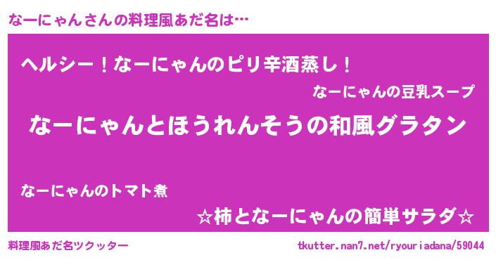 | 男性向けラノベタイトル風あだ名 | 『転生したらなーにゃんだった件』 |