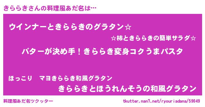 | 女子向けラノベタイトル風あだ名 | 『きららき恋絵巻』『きららき伯爵の花嫁』 |