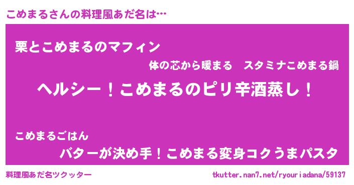 | 男性向けラノベタイトル風あだ名 | 『Re:こめまるから始める異世界生活』 |