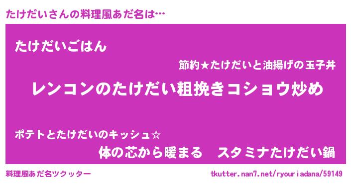 | ヒーロー風カッコイイあだ名 | 『ウルトラ戦士タケダイ』『幻影騎士タケ』 |
