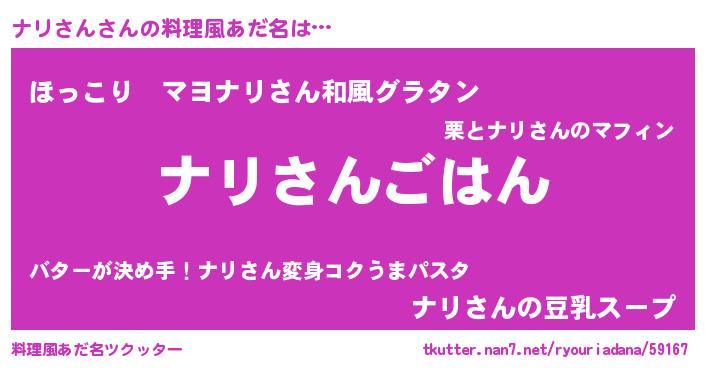 | 男性向けラノベタイトル風あだ名 | 『ナリサンスレイヤー』 |
