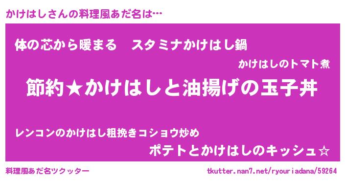 | ポケモン風あだ名 | 『カケチュウ』『カケハダネ』 |