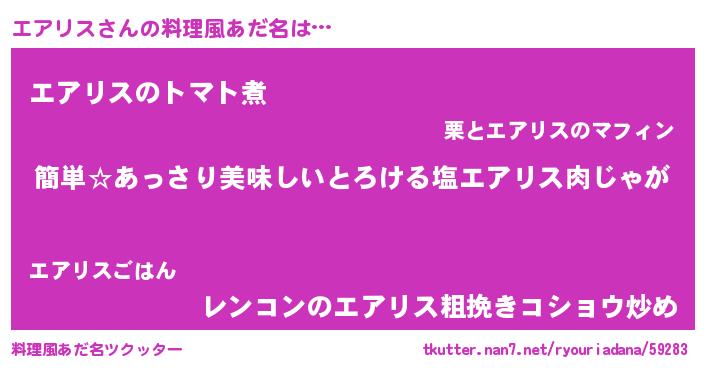 | 意味不明あだ名 | 『永久保存エアリス』『自称エアリス』 |