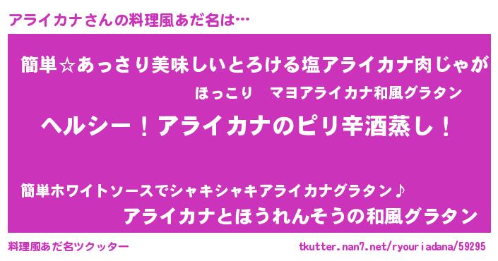 | 男性向けラノベタイトル風あだ名 | 『Re:アライカナから始める異世界生活』 |