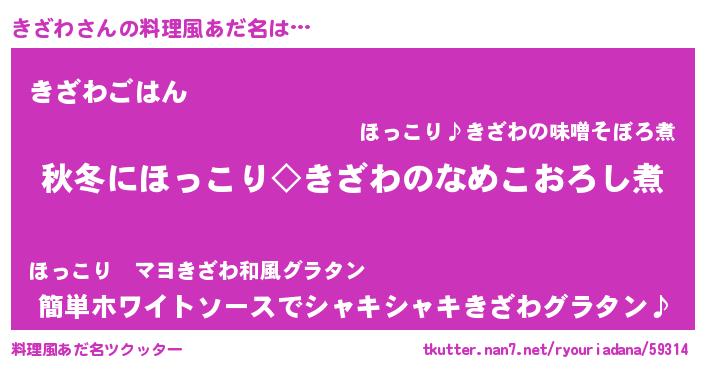 | 意味不明あだ名 | 『ヨモギ科きざわ属』『ペロリンきざわ』 |