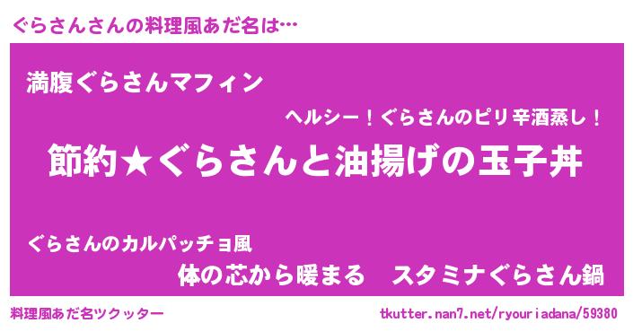 | 意味不明あだ名 | 『ペロリンぐらさん』『永久保存ぐらさん』 |