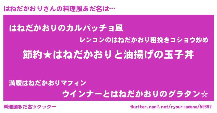 | 胡散臭い通販商品みたいなあだ名 | 『モテモテ間違いなし水晶球…その名も「はねだかおり」』 |