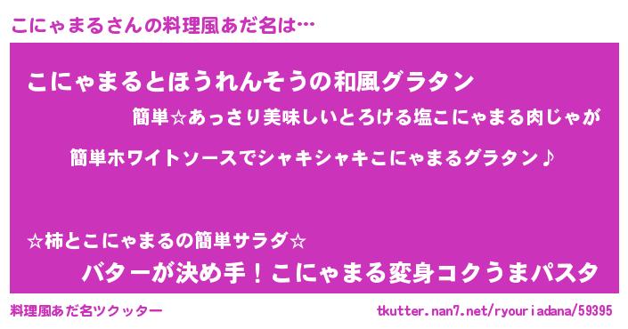 | 男性向けラノベタイトル風あだ名 | 『こにゃまるの嫁は女の子じゃないと思った?』 |