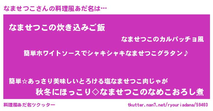 | 男性向けラノベタイトル風あだ名 | 『なませつこの嫁は女の子じゃないと思った?』 |
