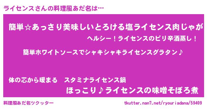 | ヘコむあだ名 | 『ライぷりん』『ライセンス(笑)』 |