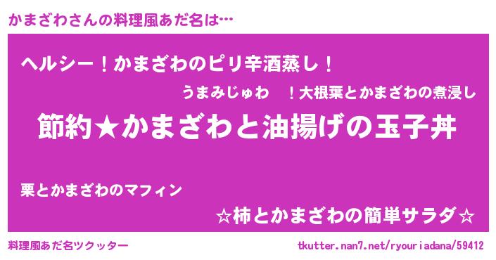| 女子向けラノベタイトル風あだ名 | 『かまざわ姫と円卓の騎士』 |