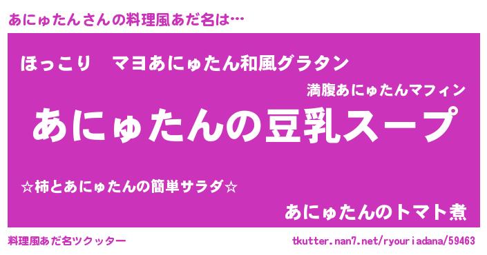 | 女子向けラノベタイトル風あだ名 | 『あにゅたんは平凡を望む』 |