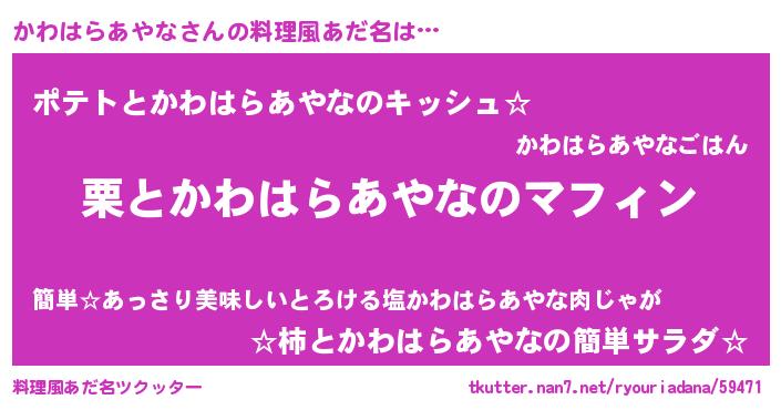 | ポケモン風あだ名 | 『カワゴンZ』『ヒカワハラアヤナ』 |