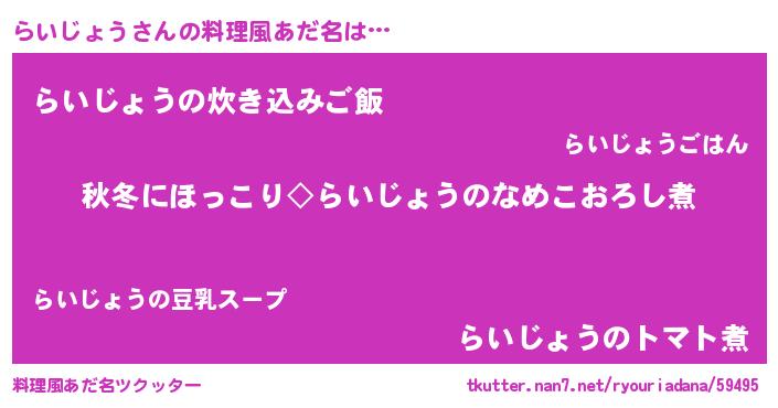 | 男性向けラノベタイトル風あだ名 | 『らいじょうに滅ぼされるだけの簡単なお仕事です』 |