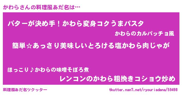 | 意味不明あだ名 | 『永久保存かわら』『自称かわら』 |