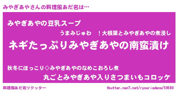 | ヘコむあだ名 | 『みやにゅー』『みやっ子』『豆乳』 |