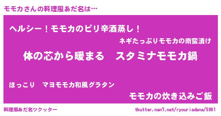 | 意味不明あだ名 | 『モモカフォーエバー』『自称モモカ』 |