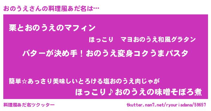 | 男性向けラノベタイトル風あだ名 | 『おまえをオタクにしてやるから、俺をおのうえにしてくれ! 』 |