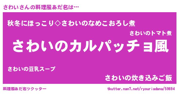| 女子向けラノベタイトル風あだ名 | 『さわいが死なない童話 林檎のさわいの診療簿』 |