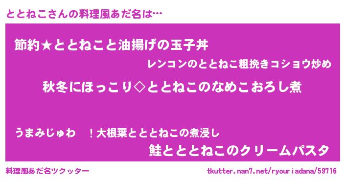 | 意味不明あだ名 | 『ペロリンととねこ』『自称ととねこ』 |