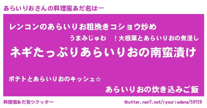 | 恥ずかしいあだ名 | 『プリティーあらいりお』『あらっちょ』 |
