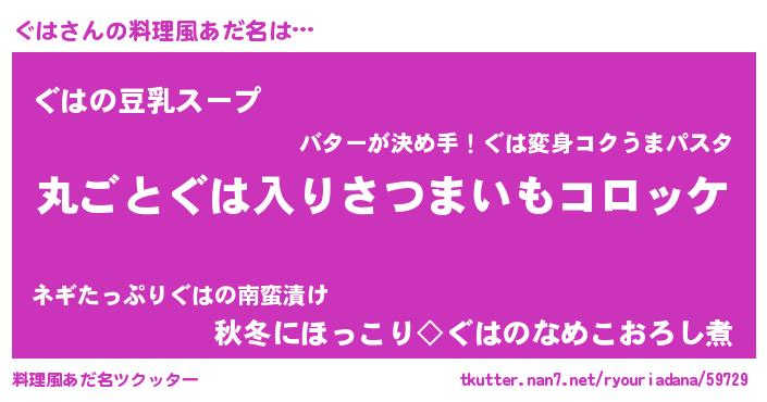 | 意味不明あだ名 | 『住所不定無職ぐは(59歳)』『ペロリンぐは』 |