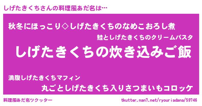 | ヘコむあだ名 | 『しげたきくち(爆)』『しげもー』 |
