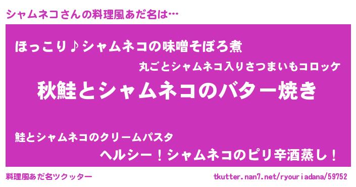 | 男性向けラノベタイトル風あだ名 | 『シャムネコという概念が存在しない退屈な世界 』 |