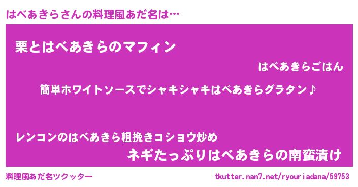 | 意味不明あだ名 | 『とにかく怪しいはべあきら』 |