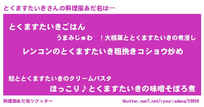 | 胡散臭い通販商品みたいなあだ名 | 『テレビで話題の高麗人参…その名も「とくますたいき」』 |