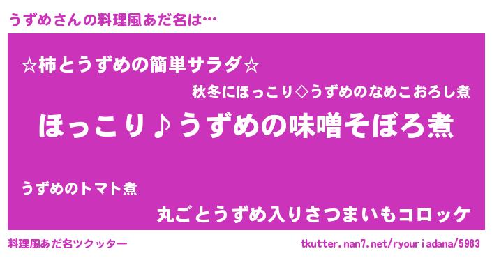 | 意味不明あだ名 | 『ペロリンうずめ』『永久保存うずめ』 |