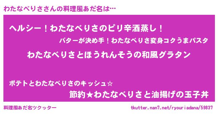 | 男性向けラノベタイトル風あだ名 | 『わたなべりさ~年齢イコール彼女いない歴の魔法使い~』 |